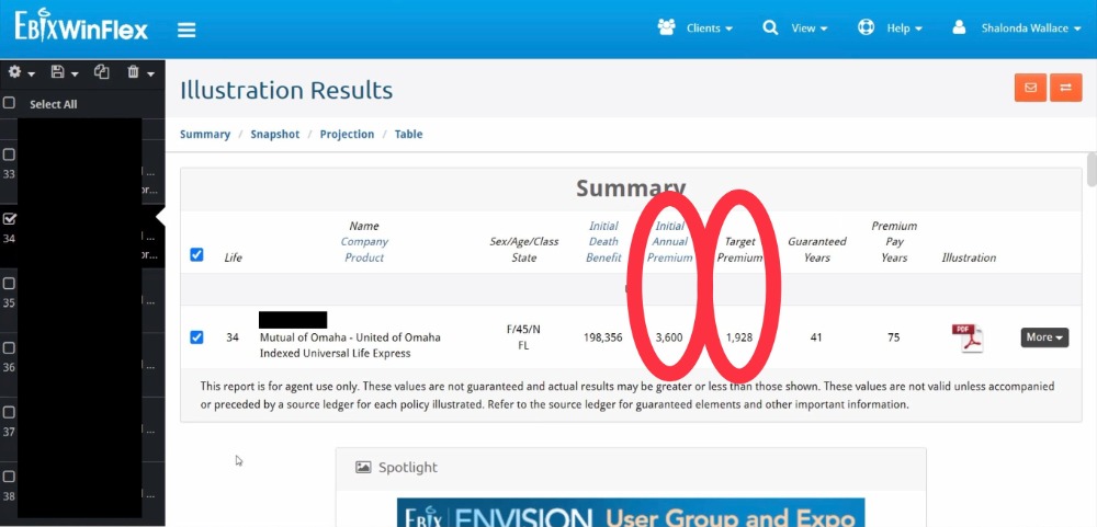For Mutual of Omaha, you will find the Annual & Target Premiums in Winflex (shown in screenshot below).